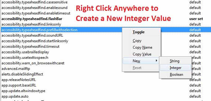 - Name that New Integer Value as ‘nglayout.initialpaint.delay‘ and Set its Value to 0.1 as shown below in the Image